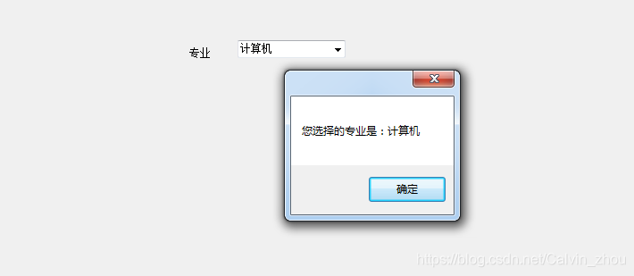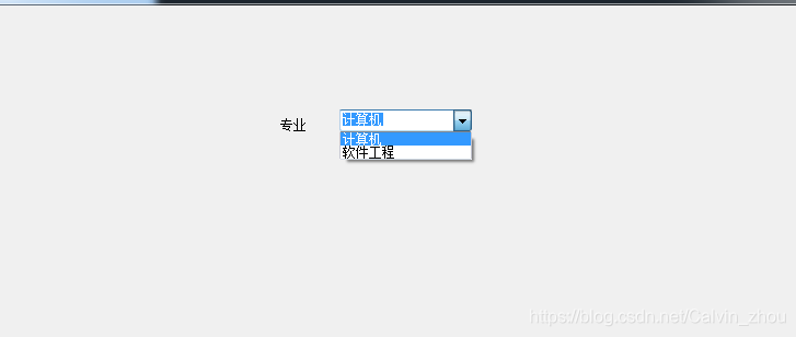 3.2 实例二 使用代码的方式绑定组合框显示专业名称,每次切换选项后弹出消息框显 示组合框中当前选择的值